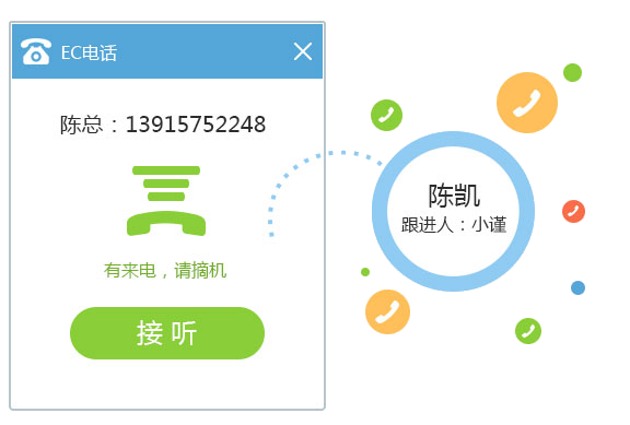 EC無線電話,點擊即可呼叫,客戶來電彈屏,快速聯系客戶,服務效率大大提升